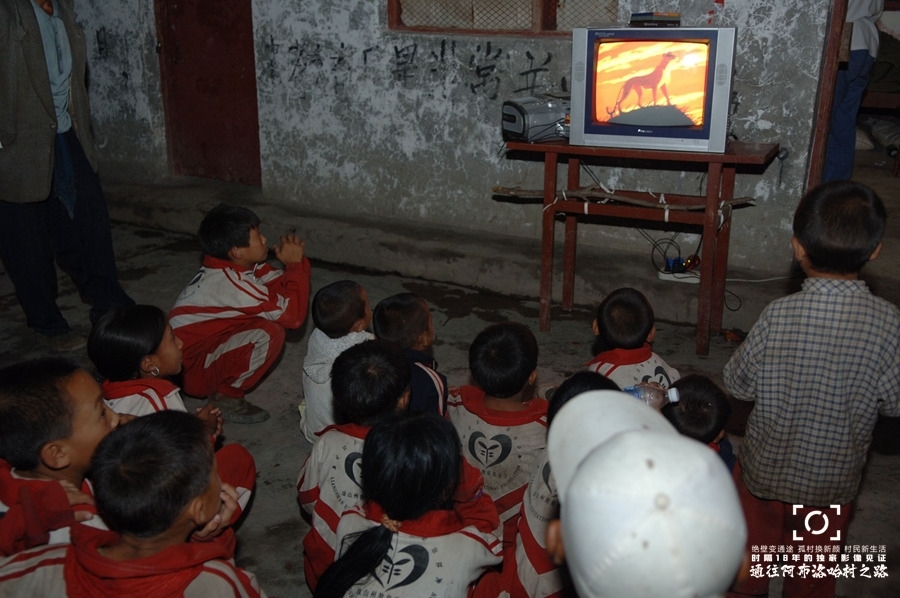 ●没有电视信号的阿布洛哈村,孩子们观看动画片光碟片。拍摄于2007年7月12日