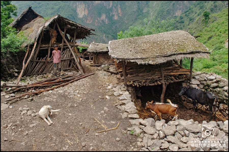 ●吉五么非扎居住在阿布洛哈村低矮的茅草房。摄于2007年7月12日