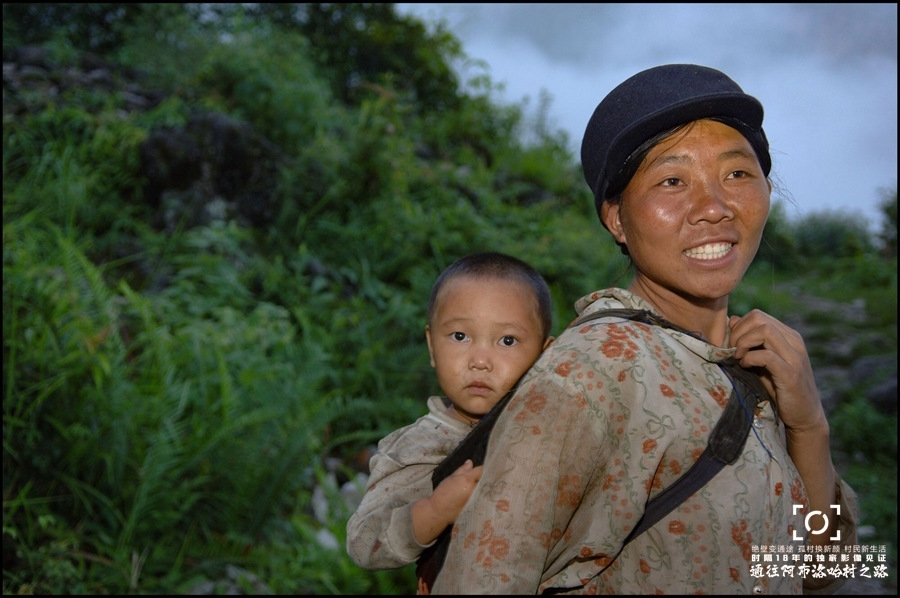 ●且沙么次扎背着女儿李子木日色在回家的路上。拍摄于2007年7月12日