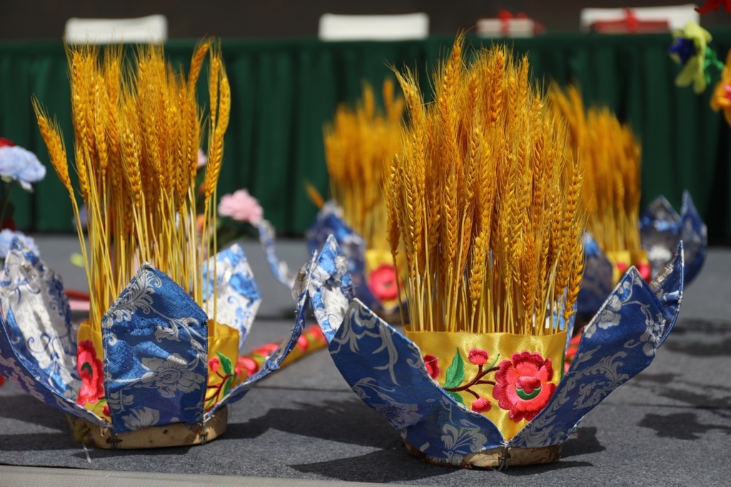 在花灯的制作上,五里堡村也有自己的“坚守”和“规矩”:市面上漂亮的塑料花不用,只用传统的方法用手工做花灯。 “前几天的花灯制作比赛,我们加入了青花瓷、羌绣、麦子、荷花灯造型等元素,设计出了‘五谷丰灯’。”五里堡村花灯设计者吴声刚说,这不仅是五谷丰登,庆祝丰收,更是寓意我们村团结互助、和谐友爱。