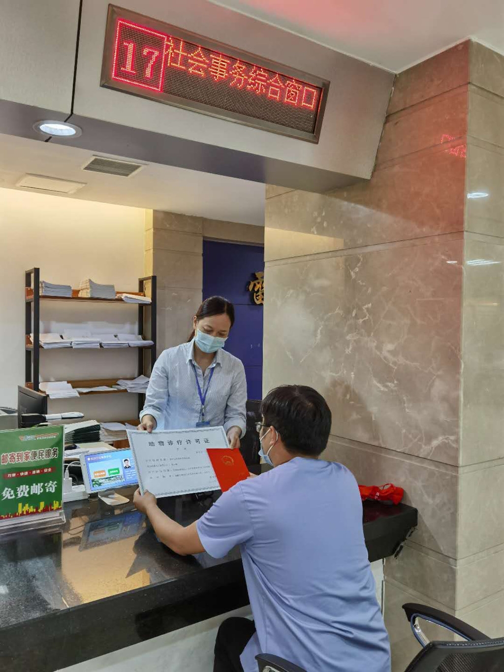 9月24日,成都市青白江区康和动物医院的李先生,在该区行政审批和营商环境建设局社会事务窗口拿到动物诊疗许可证,兴奋之情溢于言表:“原本以为要几个月才能办下来(许可证),没想到资料提交后3个工作日就拿到了。”