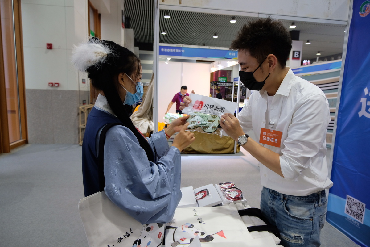 “这个包包我可以带走吗?太乖了。”四川国际旅游博览交易中心川观新闻展示点位来自成都的张女士兴奋地说到。