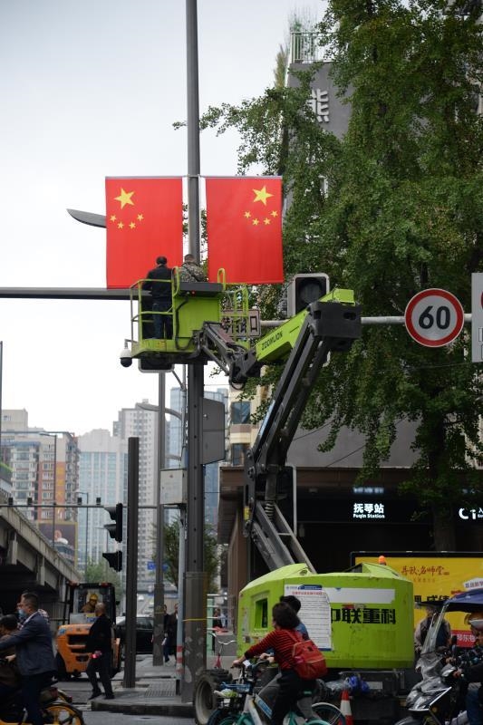 9月25日,记者从成都市城市管理委员会获悉,为热烈庆祝中华人民共和国成立71周年,营造喜庆祥和的节日氛围,成都市在主要干道和重要公共场所路灯杆上悬挂国旗。