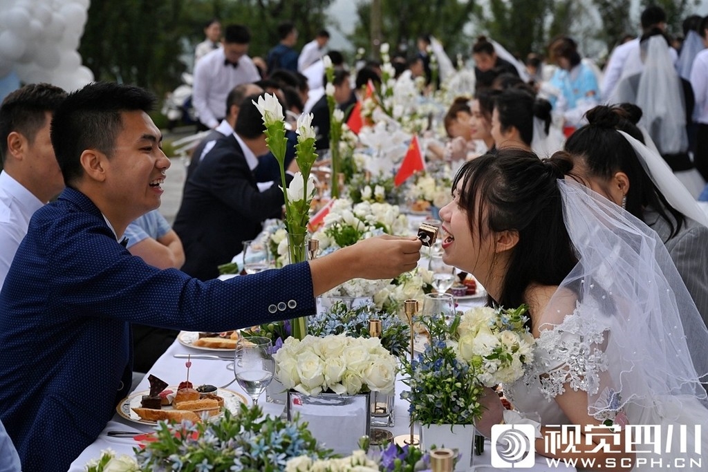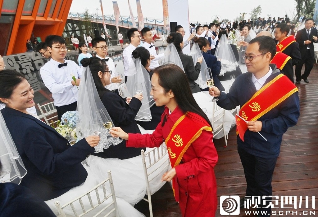 成都“城市之眼”见证200余对新人在丹景台举行集体婚礼