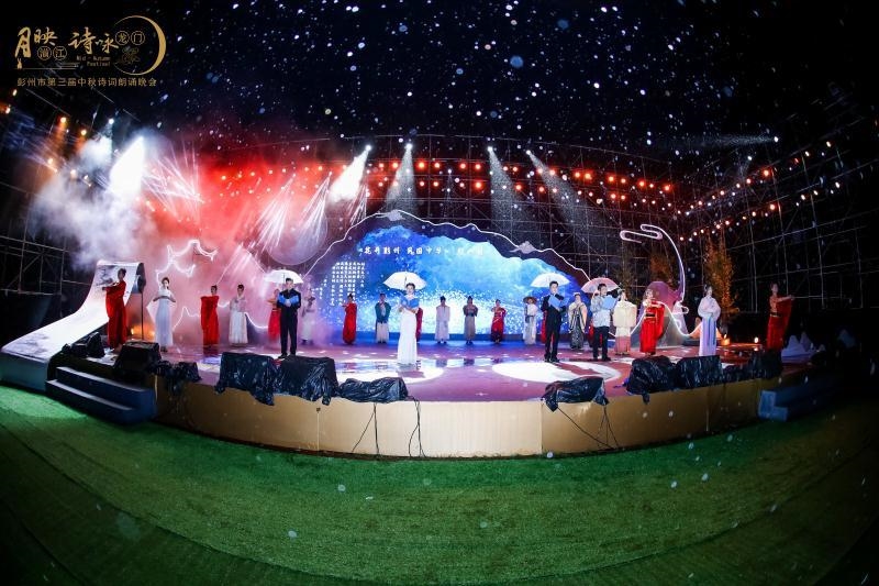 9月27日晚上,四川省乡村艺术节彭州市分会场、四川省万人赏月诵中秋集中展演彭州市分会场、彭州市第三届中秋诗词朗诵晚会,在彭州市官渠郊野公园举办。中秋诗会展示了彭州群众文化活动新成就、文旅融合新成果、立体公园山水城市建设新面貌,推动了彭州文旅经济的振兴,营造了彭州社会各界喜迎中秋、国庆佳节的浓厚氛围。