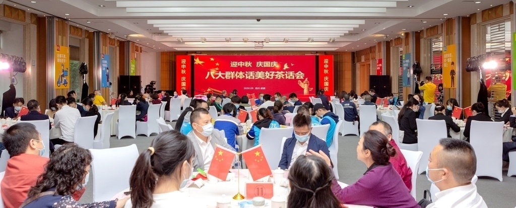 9月28日下午,由省总工会主办、成都市总工会承办的“迎中秋 庆国庆 八大群体话美好”茶话会在成都市劳动人民文化宫举行。省、成都市工会“娘家人”与货车司机等“八大群体”代表欢聚一堂、共迎佳节。