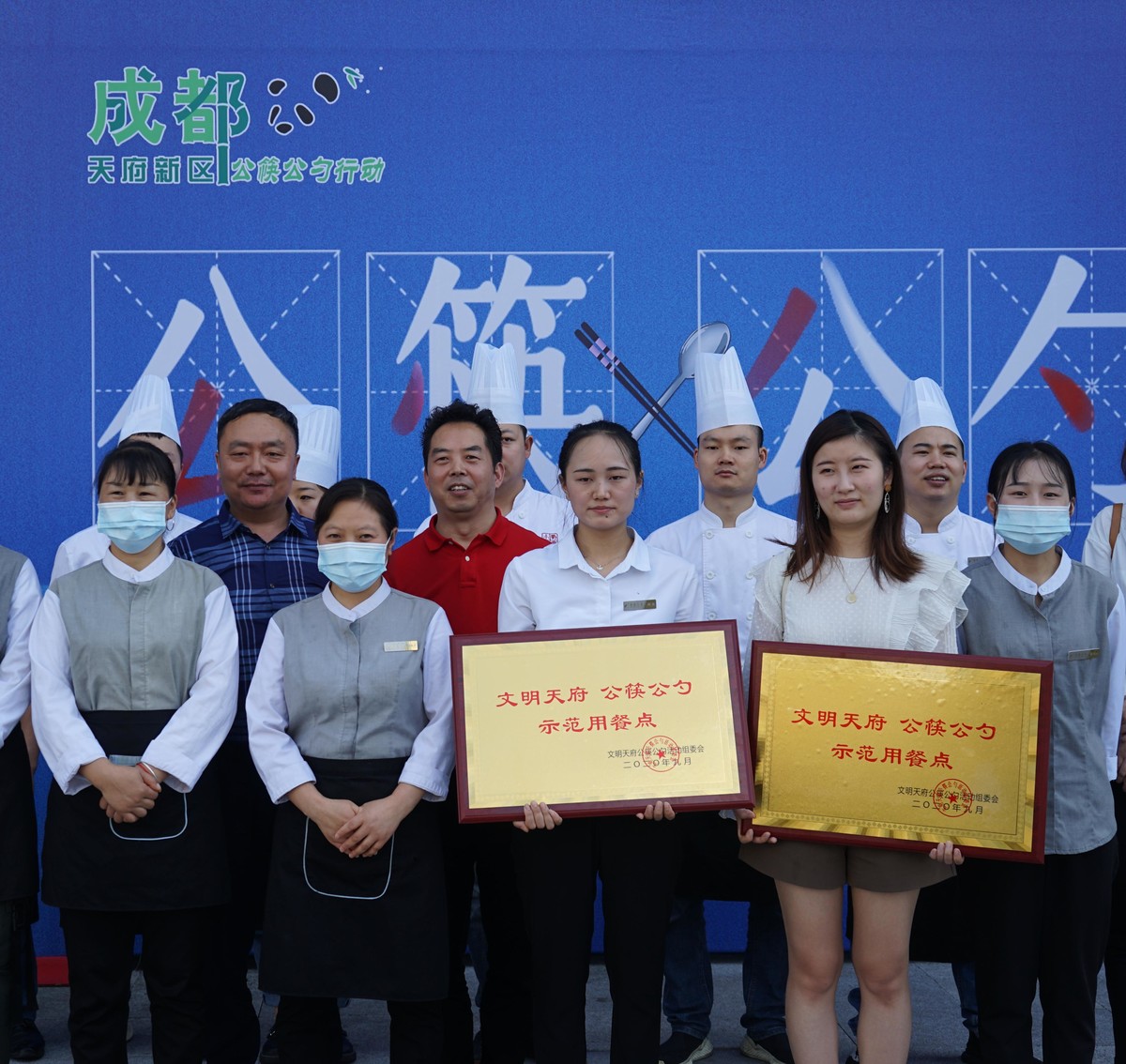 今年5月,为切实引导市民及企业践行“文明餐桌 公筷公勺”行动,四川天府新区成都直管区精神文明建设办公室指导天府新区餐饮协会等单位,在全国率先启动“文明天府 公筷公勺”示范用餐点试点工作。经过广泛宣传、标准引导、公开评比、社会公示等环节,最终两家餐饮企业首批获得“文明天府 公筷公勺”示范用餐点荣誉称号。