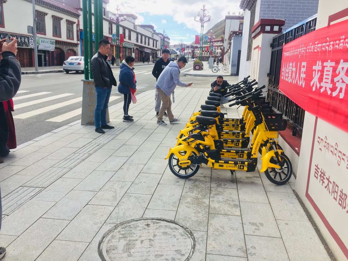 “你不晓得啊,这个就是内地到处都有的共享‘小黄车’啊,你看扫一下这个二维码就可以骑走,很方便的。”9月29日,甘孜州石渠县城区人流聚集处,多了一排排摆放整齐的共享电单车,引来许多群众驻足观看,在投放首日纷纷试骑“小黄车”出行。