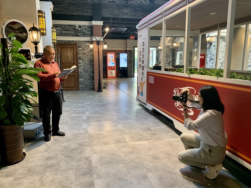 据了解,“乡村影诵”朗读者活动是“书香熏陶、文明郫都”国庆百姓书展的分会展,主要举行有声阅读、视频阅读和影院跨界阅读。“活动灵感来自《我和我的祖国》《我和我的家乡》两部电影,阅读爱好者参加《我和我的祖国》朗读活动需要来影院完成视频录制,回到家乡的市民可以参加《我和我的家乡》的活动,需要以家乡为背景用家乡话朗诵《乡愁》。”水乡记忆电影院的负责人赵国甫介绍。
