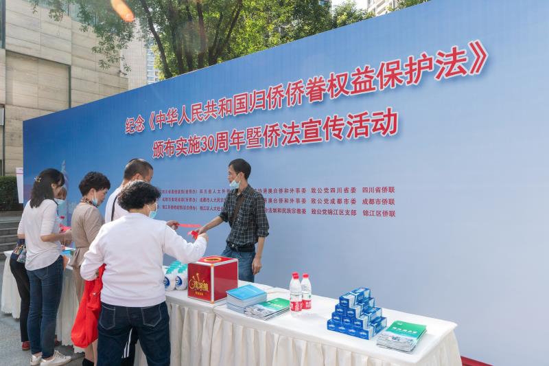 为纪念《中华人民共和国归侨侨眷权益保护法》颁布实施30周年,更好营造全社会知侨护侨、爱侨助侨良好氛围,9月29日,四川省、成都市、锦江区三级统战和涉侨部门(团体)在成都联合举办了纪念《归侨侨眷权益保护法》颁布实施30周年暨侨法宣传活动。相关部门领导,部分归侨侨眷、在川侨资企业和华侨华人代表等共计130余人参加活动。