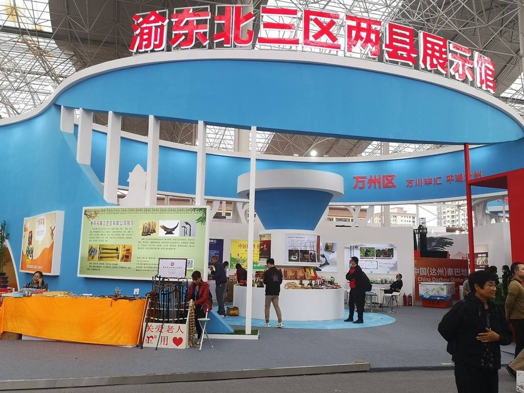 在宣汉县展区,商品只占到一小部分,更多的空间搭建成了土家族建筑模型和舞台,工作人员身着“巴人工作服”,合着“巴山歌”,跳起了摆手舞……宣汉县商务局负责人介绍,自该县重金打造的巴山大峡谷旅游项目开门迎客,“三年来,我们少卖商品多卖文化。”