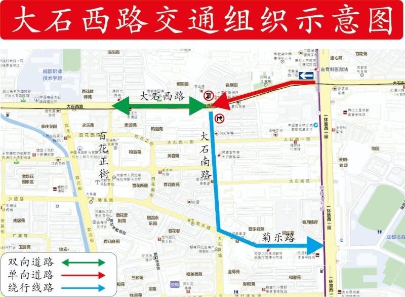 二、施工期间,原经大石西路(一环路-大石南路)进城方向的机动车现可通过大石南路、菊乐路等道路绕行。
