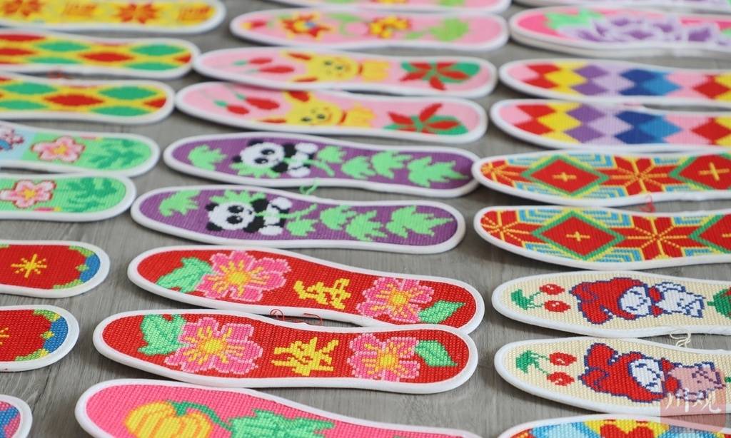 一年来,张宜碧一有空就拿出针线绣鞋垫,有时坐在茶楼的吧台绣,有时回家坐在沙发上绣,断断续续,做做停停,一绣就是整整一年,把自己的祝福和祈祷,都绣在了一个个平整规则的针脚中……
