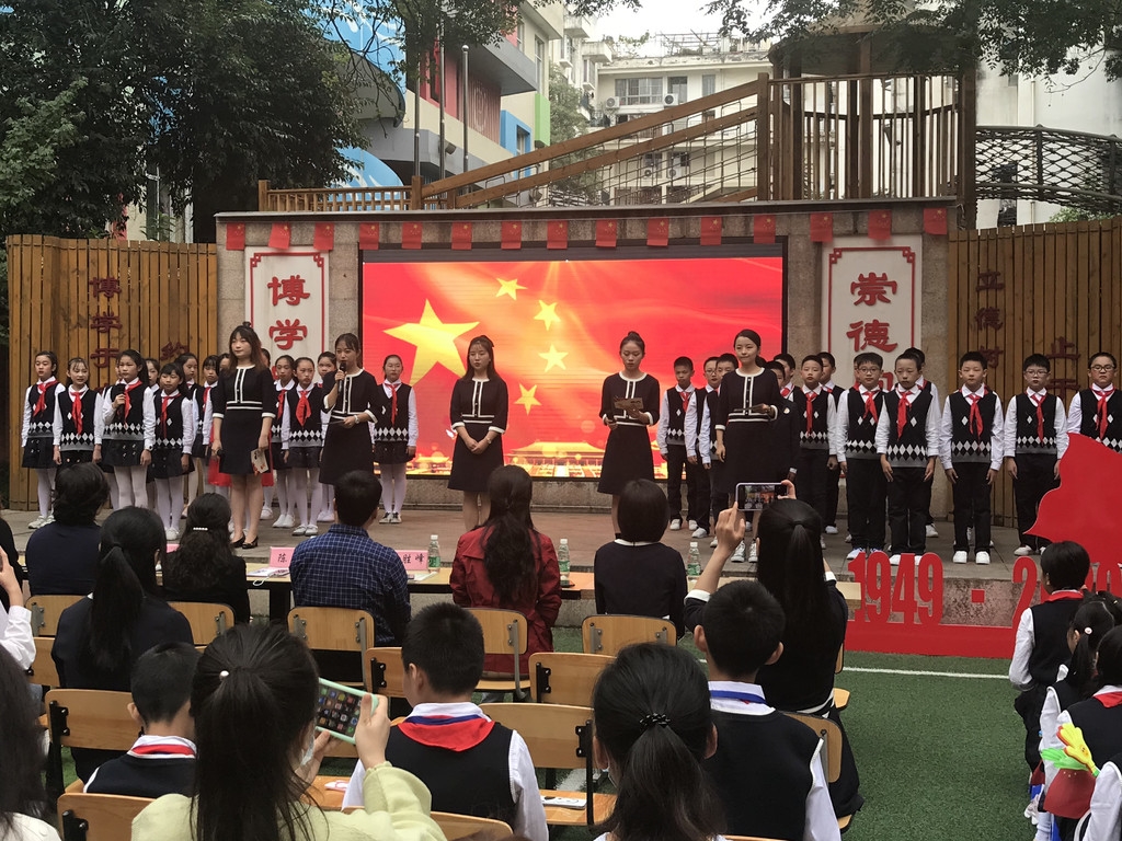 为祖国送祝福,讲双眼井好故事。9月30日,成都市双眼井小学“融·中心”正式成立,5G“云双眼井”整合融汇多方资源,全面展示双小昨天、今天和明天的发展好故事。