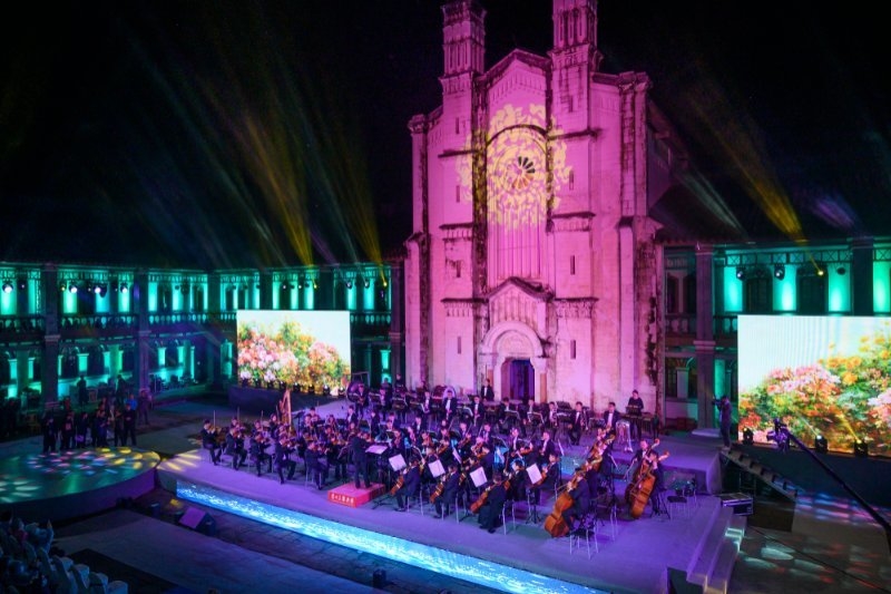 9月29日晚,彭州白鹿古镇上书院,第八届白鹿·法国古典音乐艺术季开幕式暨开幕式音乐会启幕,音乐、建筑、灯光完美交融,带来一场悦耳动听的视听盛宴。