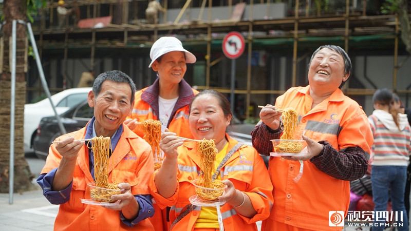 9月30日,在中秋、国庆双节来临之际,金牛区荷花池街道荷花池社区开展了“国庆吃面、国泰民安”,向环卫工人送“温暖面”活动,向在国庆期间仍坚守在工作一线的环卫工人送去了节日的问候和祝福。