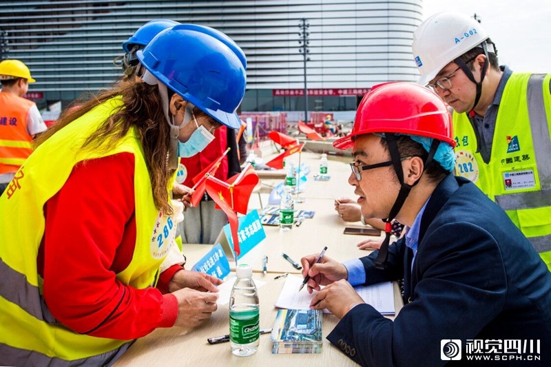 9月30日,中建三局、华润集团、东安街道的50余名员工与龙泉驿区中医医院主治医师团自发组成 “代写家书志愿队”及“抗疫义诊医师团”,为工地上500余名农民工代写家书、免费义诊。将他们的思念之情写进字里行间,为大家的健康保驾护航。