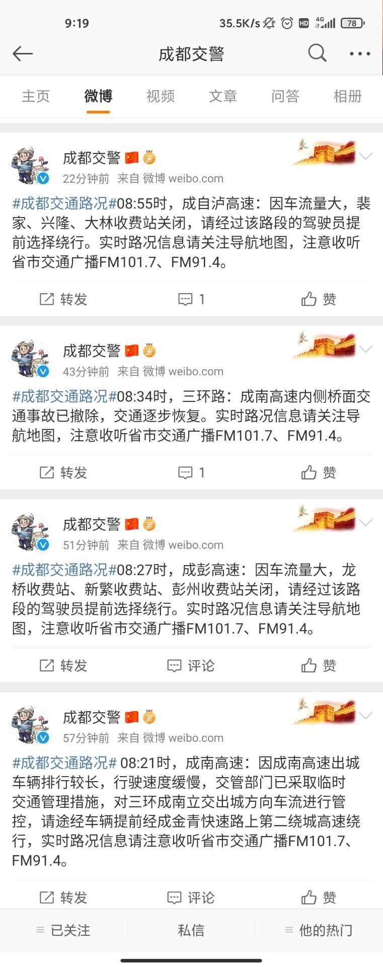 昨天下午,川A大军就提前出动了,成都的交通从一环红到三环。你以为这就完了么?没有!10月1日9点,记者从成都市交管局获悉,成自泸、成彭、成南等几条高速又双叒堵起了。