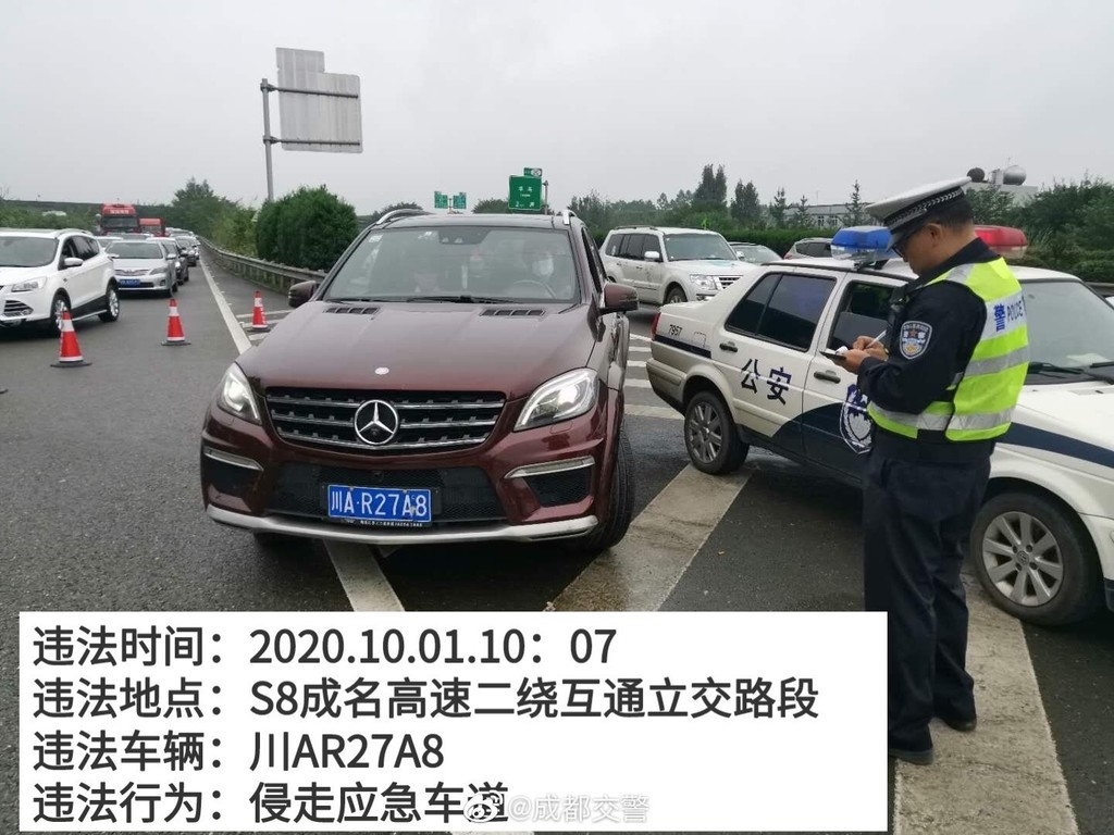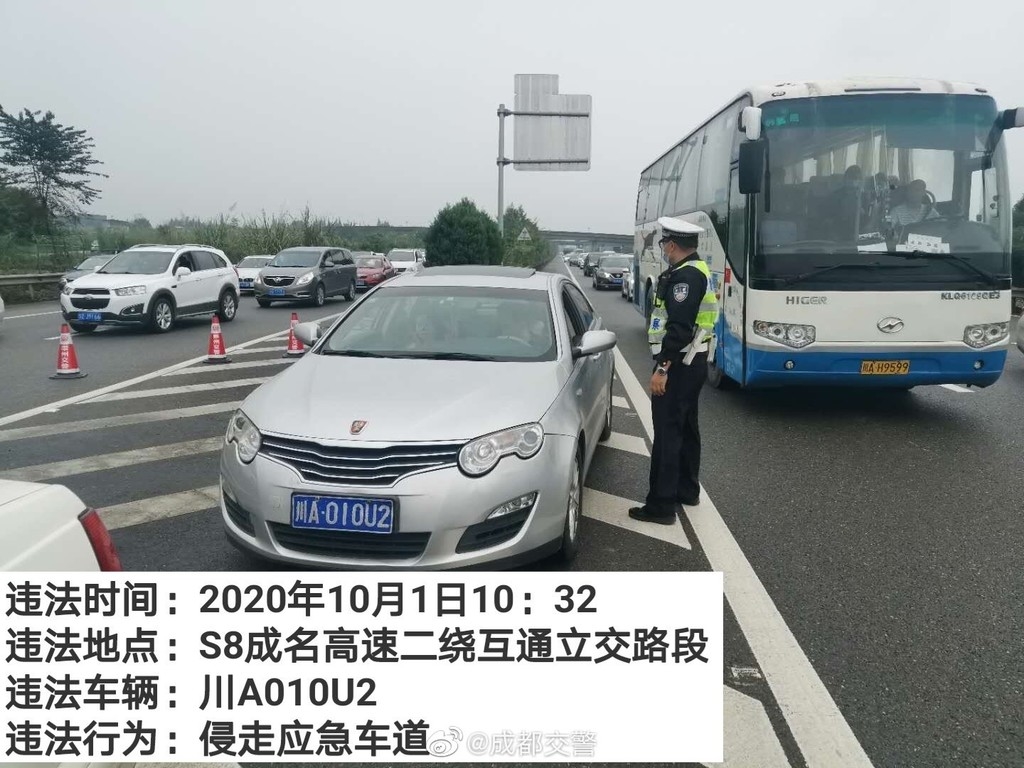 成都交警提醒广大驾驶人:应急车道严禁侵占!出行路上,遇车流较大时,请广大驾驶员自觉依次行驶,不要穿插、侵走应急车道,注意安全,文明守法!