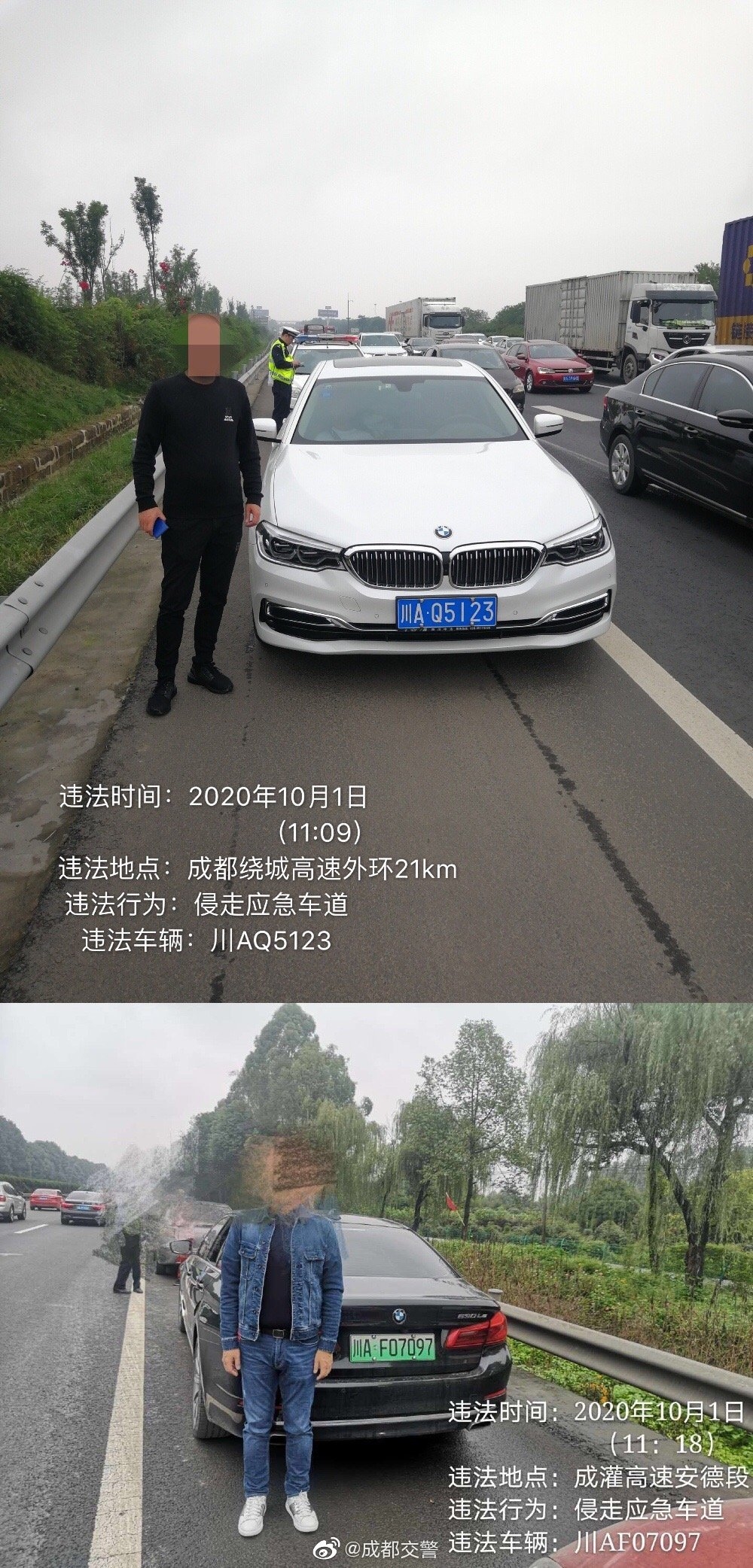 期间,有少部分机动车司机侵走应急车道交通被民警现场发现并处罚。