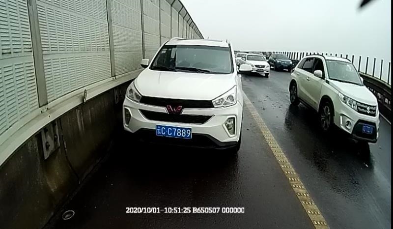 当日上午10时40分左右,巡逻民警在巡逻时,发现一辆白色云C牌照在G93成渝环线高速794公里(大渡河大桥)应急车道上行驶,巡逻车辆立即打开喊话器,一路指挥该违法车辆安全停靠在应急车道旁。在对其进行简单检查后,指挥其从乐山站下高速,到三大队大队部接受处罚。