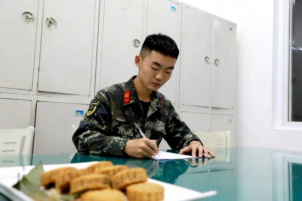 纵有万般礼,还寄笔尖情。官兵们自制的月饼虽然没有商场里卖的好看,但味道很好吃,也包含着一份深深的情意。晚上,他们对月饼进行简单包装后,便拿起了手中的笔,写下对远方的亲人的美好祝福,月明星稀,天涯共此时……