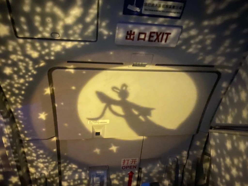该负责人介绍,这个“嫦娥奔月”的投影灯是特意提前定制的,主要考虑到中秋夜正是赏月的最佳时辰,但旅客却在封闭的客舱里看不到明月,因此有了这样的创意。