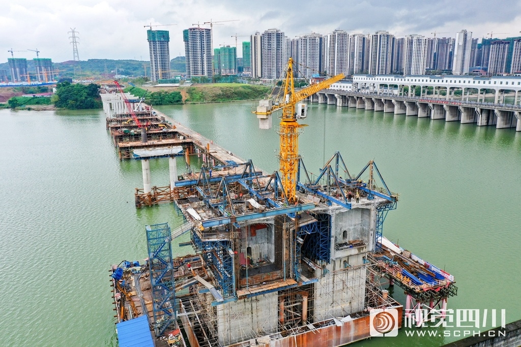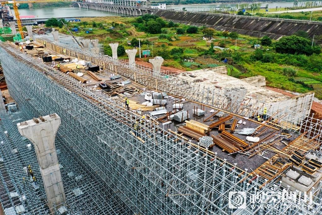 2020年10月2日,在四川省南充市顺庆辖区的嘉陵江将军大桥项目建设现场,机械轰鸣,钢架林立,近200工人放弃假日休息加入了施工队伍,全力推进这一重要基础设施项目进度。