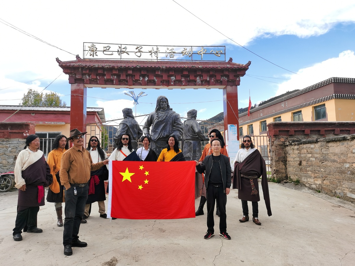 在康巴汉子村,黑化的景区沥青路和新建的游山步行道纵横交错,一栋栋漂亮的藏式民居楼顶上,鲜艳的五星红旗迎风飘扬。宜宾驻村干部向小勤来到村民泽巴多吉家中,与泽巴多吉一家唠家常,跳起欢乐的锅庄。