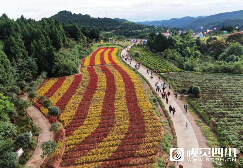 10月3日,德阳市旌阳区和新镇长寿村中国香山寿香谷,众多游人在此赏花、游玩,感受节日气氛,景区内呈现出一片热闹景象。 今年“双节”期间,该景区进入盛花期,墨西哥鼠尾草、鸡冠花、雁来红等争相绽放,大片大片的“花海”把景区装扮得格外梦幻。 此外,景区还设置了浪漫空飘热气球、马戏嘉年华、网红鸟巢、七彩滑道、小火车疯狂索桥等特色项目,吸引着各地游客前来“打卡”。