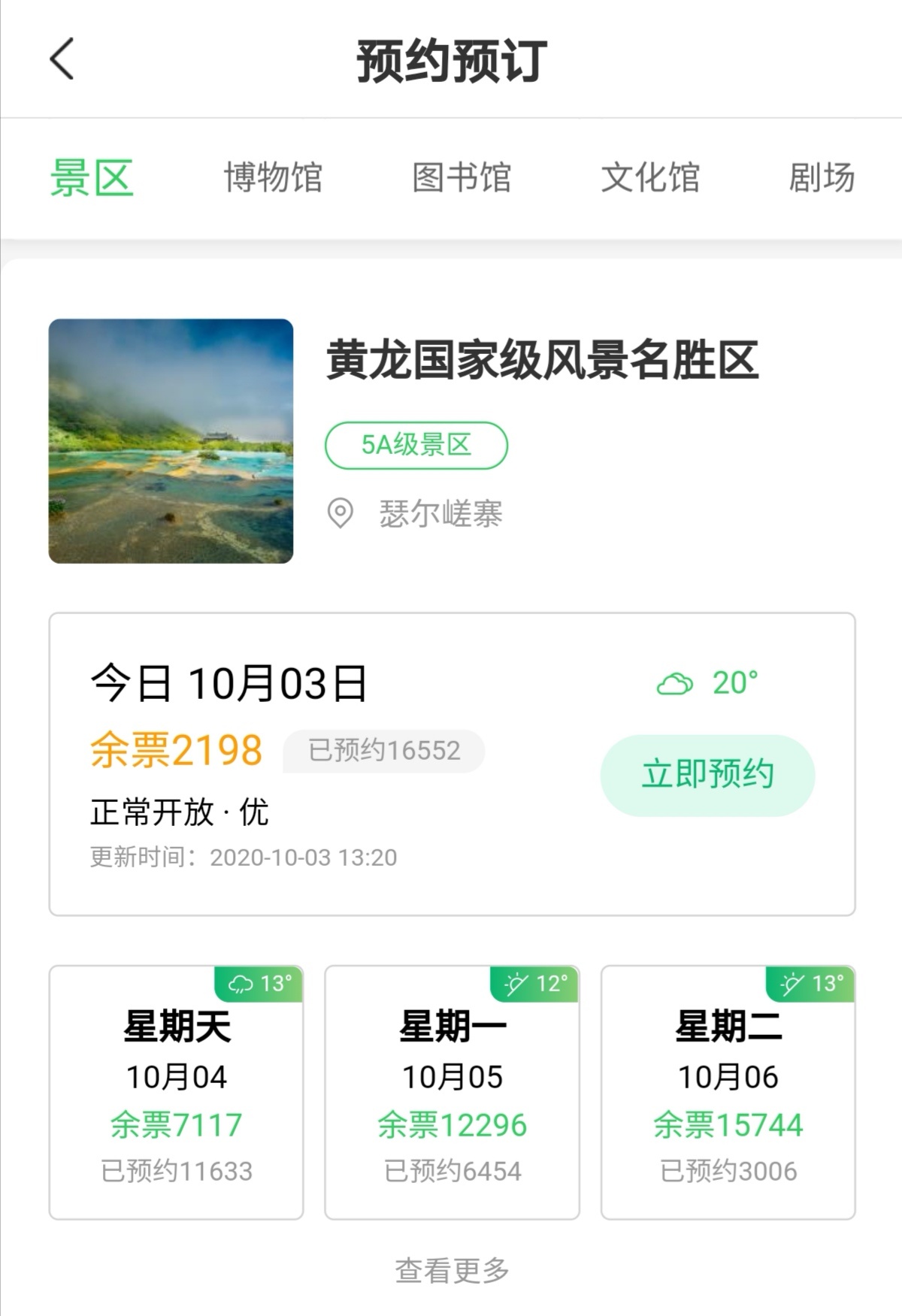 截至3日13:40,九寨沟景区4日、5日门票均已预订一空,未预约的游客可选择其他时段或周边景区游览。