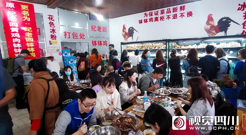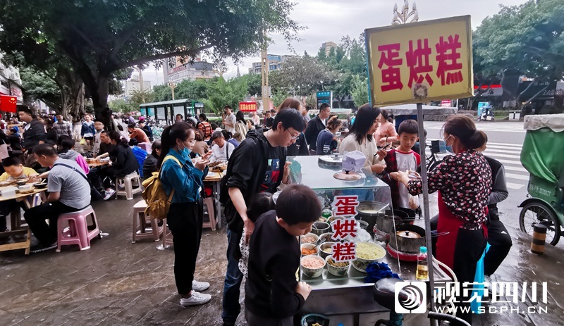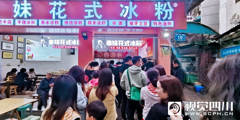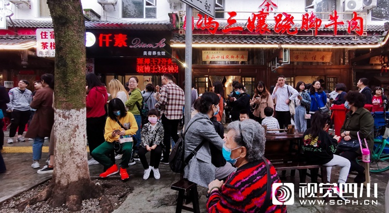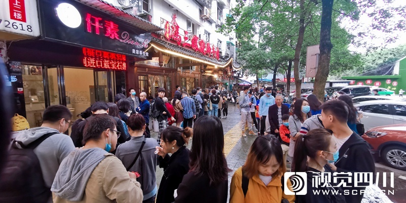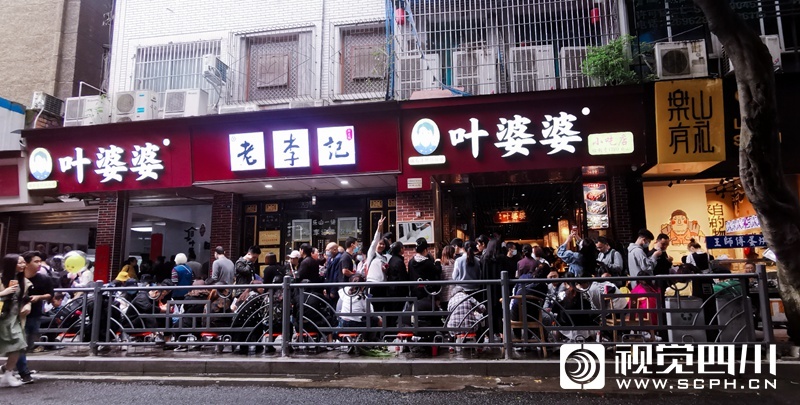 国庆第三天,记者在小吃闻名的乐山,感受了一次美食排队之旅。乐山的小吃种类繁多,用上双手双脚都数不清。蛋烘糕、烧麦、甜皮鸭、钵钵鸡、油炸串串、冰粉、豆腐脑、麻辣烫、凉糕、黄鸡肉、五香兔头、鲜椒兔、卤肥肠、跷脚牛肉……一个胃根本装不下。国庆长假,有不少游客慕名而来,小吃店门口都排起了长队,有条形、有L形、有S型……排队的队伍一眼望不到头,感觉想吃午饭的游客“排拢”了就可以赶上晚饭时间了。不过就算如此,“吃货”们仍然不惧辛苦地排着大队,一副不吃到决不罢休的气势!