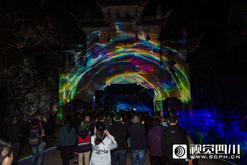 相比其他灯光秀,《剑门长歌》有自己的独一无二:它以天然崖壁为幕,将剑门“天险”独一无二的崖壁与绚丽的灯光科技融合,借助全息投影、声效互动等科技手段,以及综合利用戏剧、舞蹈、音乐等艺术形式,再结合大型通关互动游戏的植入,让游客在行进观演中,体验户外真人“通关”游戏的趣味,以及全感官的沉浸式体验。