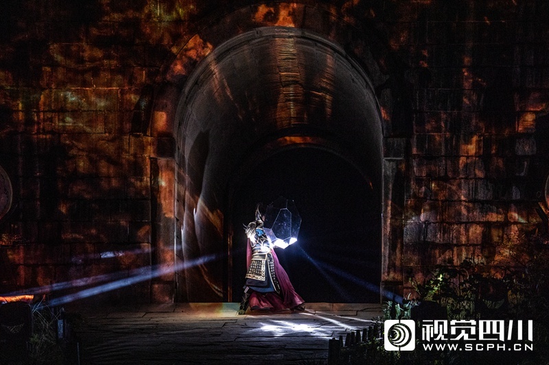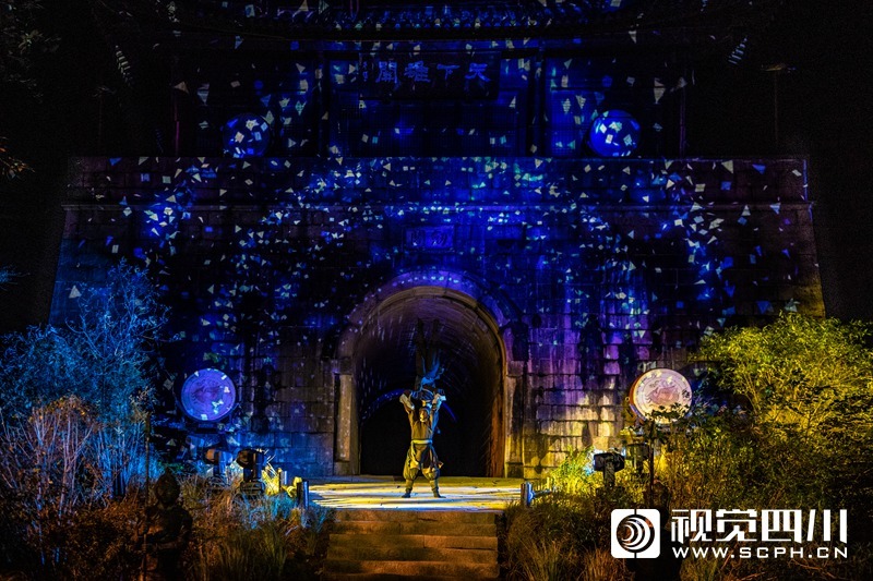 不止是互动游戏吸引人,剑门长歌同样也是一场视觉盛宴,以重要节点关楼为例,以剑门关楼为核心,亿万年崖壁为幕,通过真人实景演出和声光电科技的融合,以“剑”为主题,围绕“天剑、御剑、出剑、藏剑、心剑”五个篇章,向游客展示秦灭六国、孔明立关、蜀汉北伐、姜维守关等历史故事。“千年风云变幻,在关楼间,在崖壁间,太震撼了,简直就是一场独属于剑门关的崖壁IMAX。”游客李女士感叹。