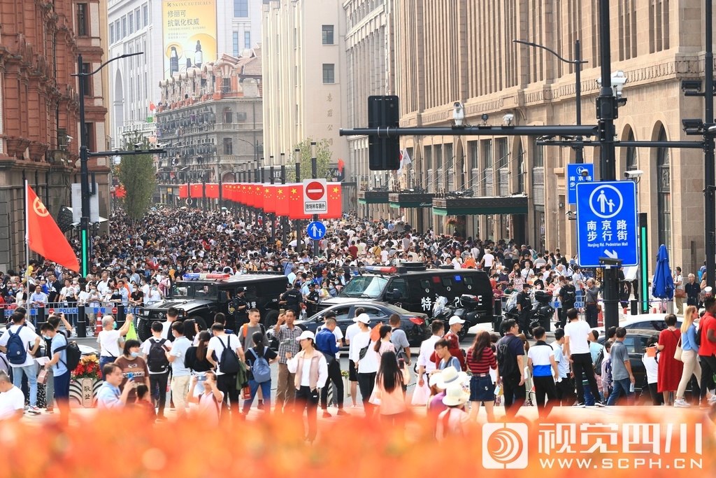 为了守护游客安全,武警上海总队派驻了上千官兵在南京路、外滩、豫园等地值守。记者在现场观察到,灯光秀开始前,从南京路到外滩一线的客流量明显增大,“雨刷式过马路”再现:武警官兵们用身体组成一道“拉链式人墙”,红灯亮时,战士们排成人墙,绿灯时则让开斑马线护送行人过街。