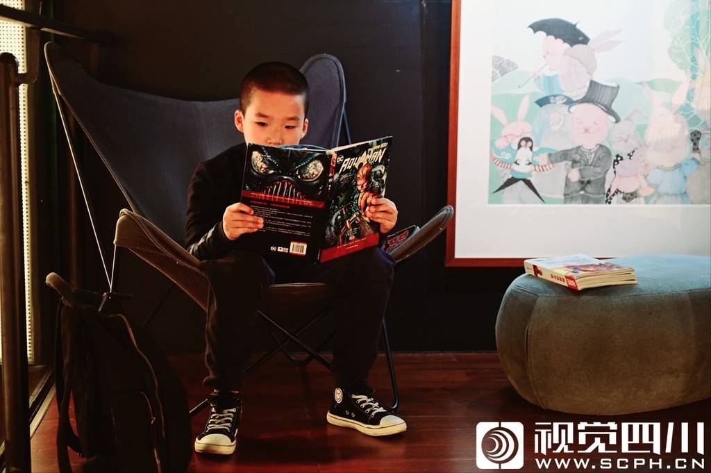 10月4日 成都一书店内 一位父亲和儿子一起阅读