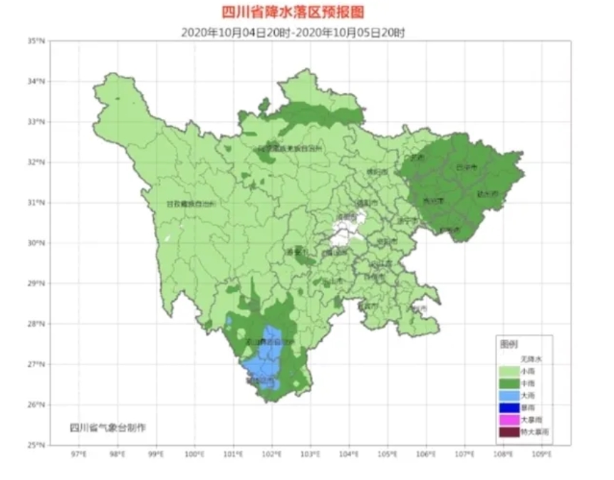 目前来看,10月,四川将有4次降雨,而第一次就在国庆大假期间。最近三天,四川依然以阴雨天气为主,在盆地东北部、南部有中雨,其他地区阴天为主。