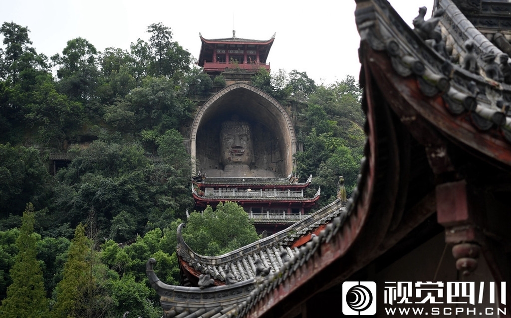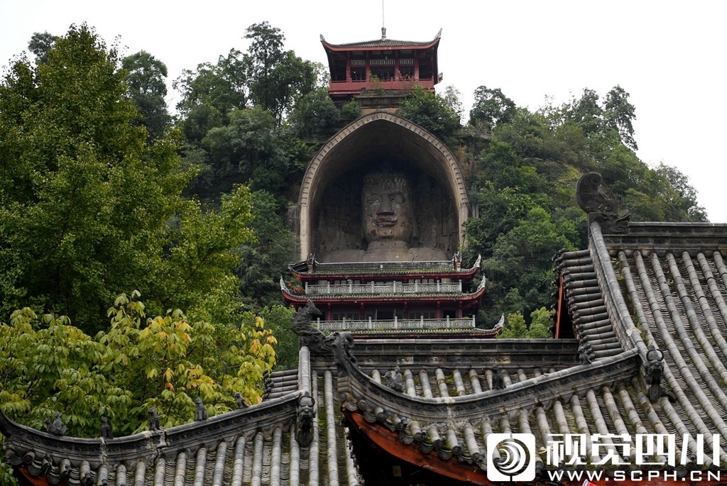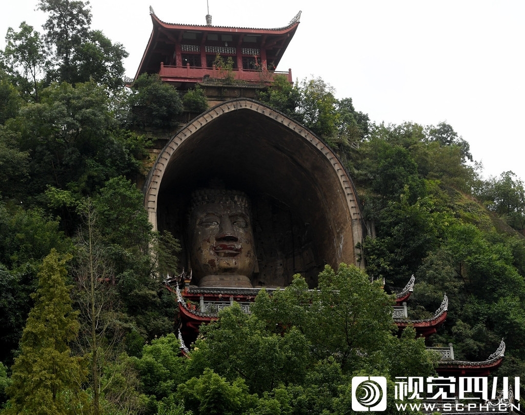 大佛寺占地2万平方米,建筑面积2000平方米,全系古建筑或仿古建筑。山上山下绿树成荫,悠久的人文景观和美丽的自然风光融为一体,形成川南地区颇富吸引力的风景名胜古迹之地。大佛的头顶上方有一道石条卷拱护罩,上刻“大开觉路”四字;崖顶上还有砖阁一座,远看像在戴在大佛头顶上的宝冠。大佛前有阁楼遮盖,以使佛身免遭风雨浸蚀,阁楼也是大佛寺的主体建筑,把大佛从肩部以下遮得严严实实。大佛开凿于北宋元丰八年(公元1085年),完工于公元1092年,历时八年始完工。