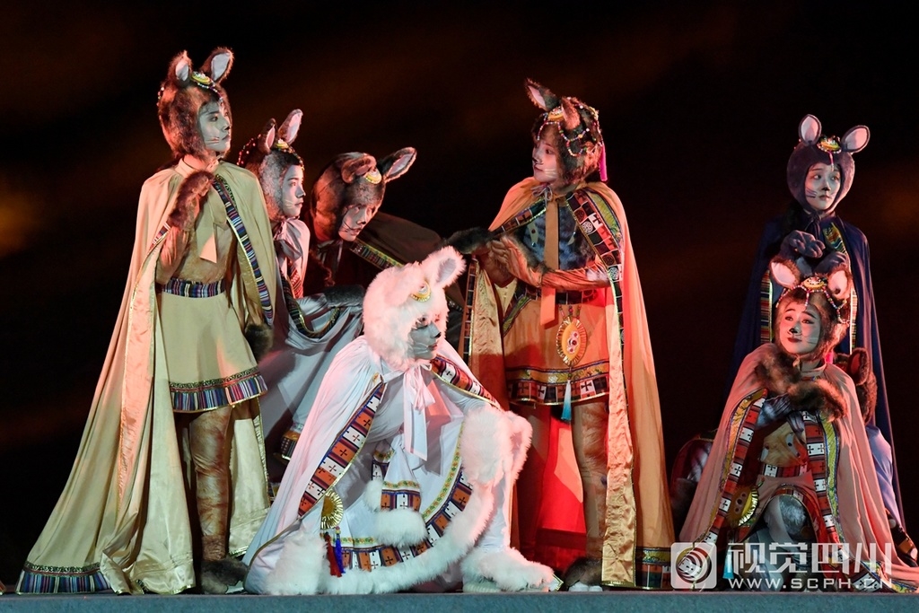 甘孜州乡城县“香巴拉猫舞台剧”讲述的是远古时期,猫受邀来到乡城,不仅控制住了鼠患,并最终找到香巴拉王国的故事。