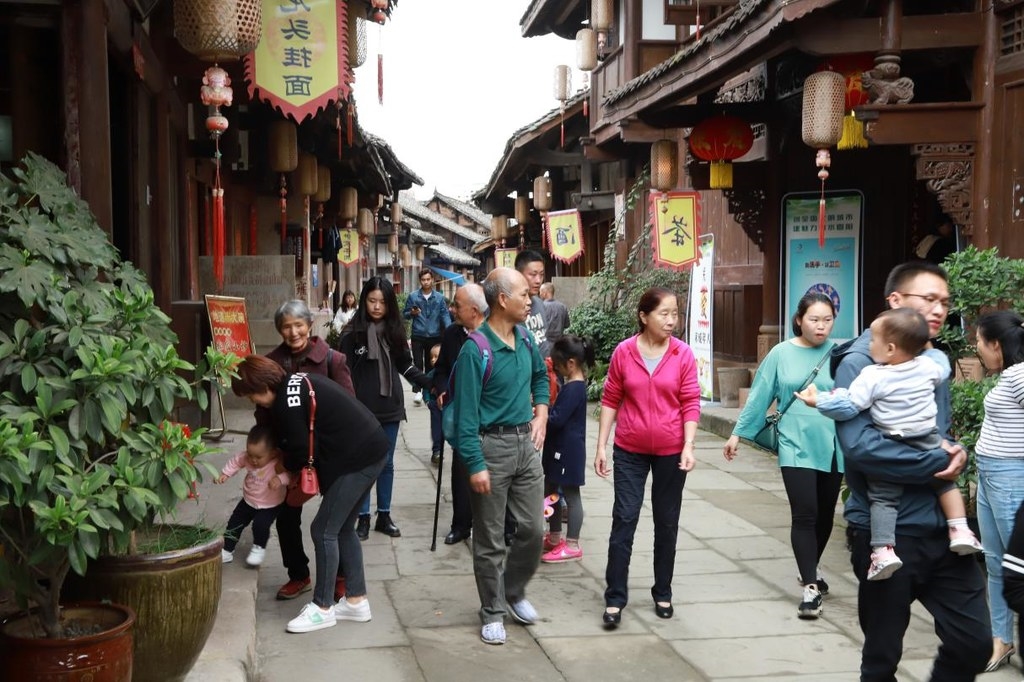 “这里的街道、房屋都保持着比较原始的风貌,本身承载着许多人文元素,在里面能感受到一种古朴的风情。”在恩阳古镇,游客王伦怀一边品着盖碗茶,一边欣赏古色古香的景致。“这几天进店的客人数量大概比平时多了2倍,我从早上一直忙到下午,今天来我店里买小吃的客人要突破1000人。”“古镇麻辣烫”经营者杨栋梁一边煮麻辣烫一边说。“我们在节前对古镇进行安全隐患排查,在陡梯、河边设置了安全警示牌。”记者从恩阳古镇管委会了解到,为了确保假期旅游安全,管委会每天还派出4名人员在古镇进行流动巡逻。