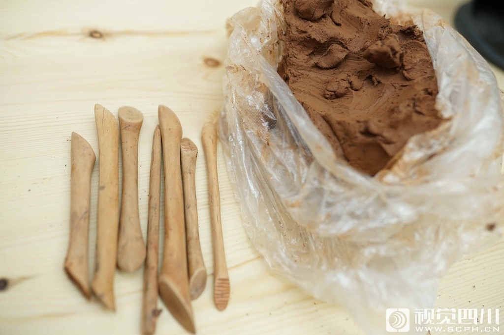 泥塑是一种创新型造像塑制法,它需选用当地罕见的白檀香木作为主料,将檀香磨成粉末状后,与珍贵的珊瑚、珍珠、松耳石、玛瑙、琥珀等各种宝石和黄金粉、银粉、各种藏药粉等多种物料糅合成塑泥,再用传统技法塑成造像。其特点和难点都在于檀香塑泥,因是多种杂物的混制塑品,其可塑性和粘合性是工艺难点。