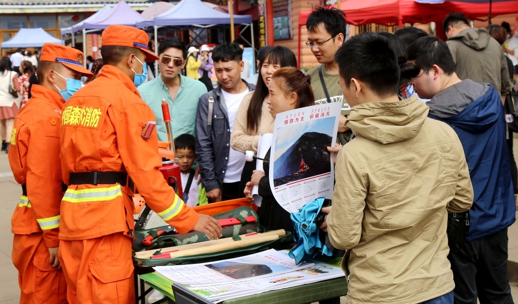 宣传过程中,队员们积极主动讲解防灭火知识,全面细致展示各类灭火装备,向游客演示和传授了灭火机具的操作使用方法,并通过让游客现场体验灭火机具的实际操作,让游客在学习到森林防火知识的同时,增强实操能力,进一步提高防火安全意识。