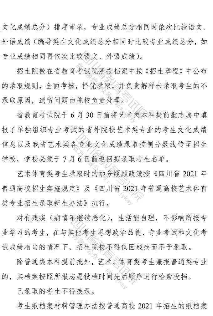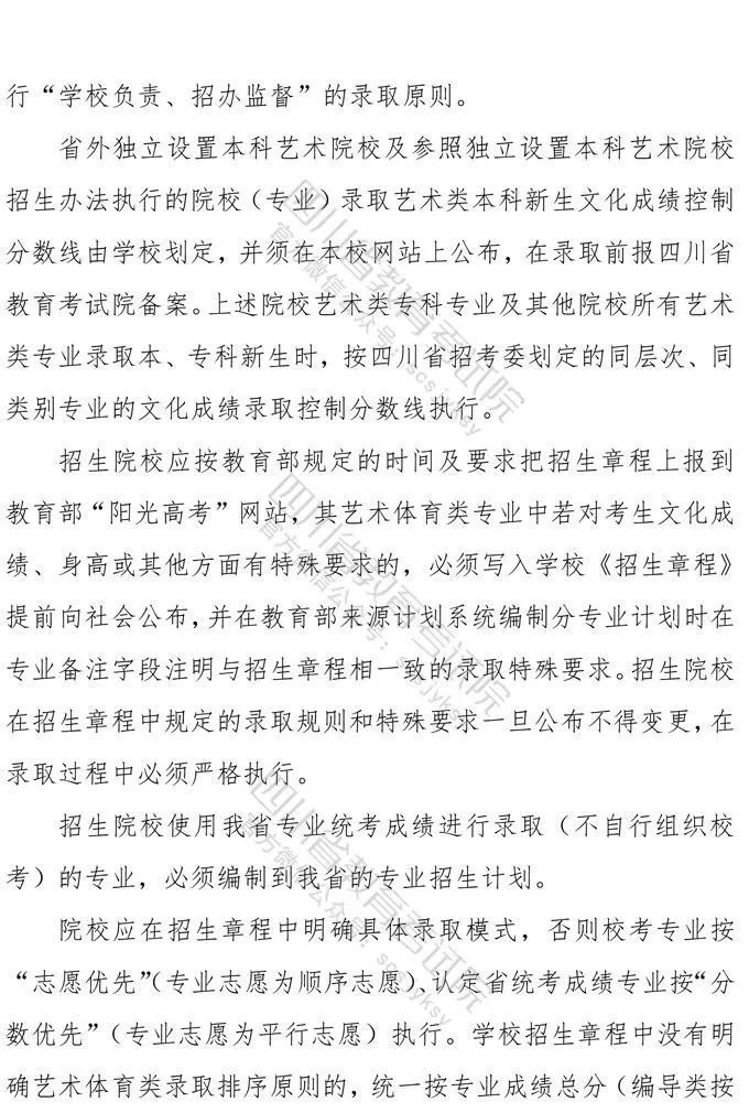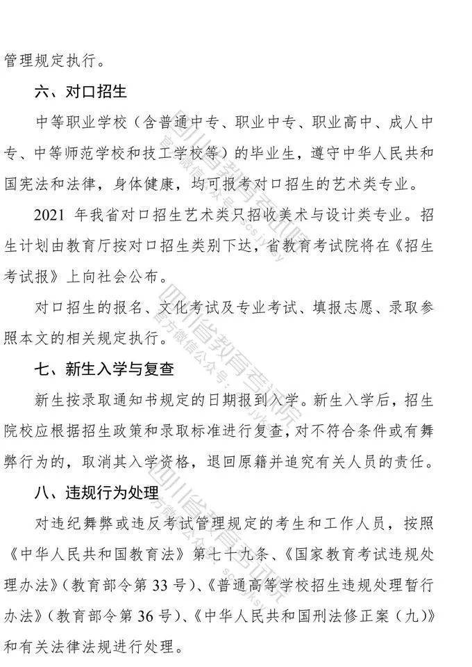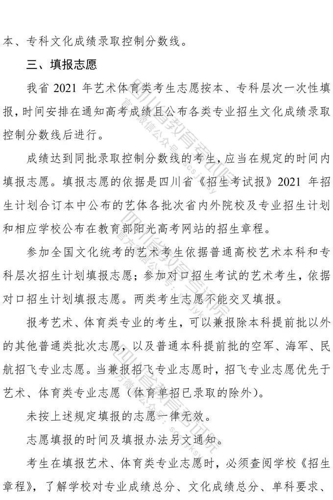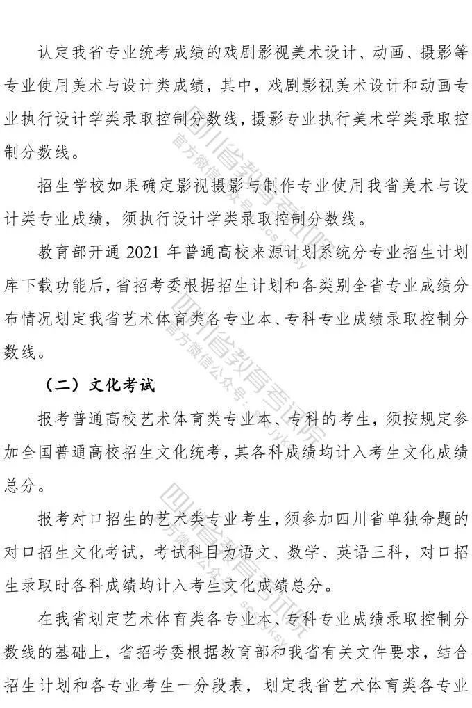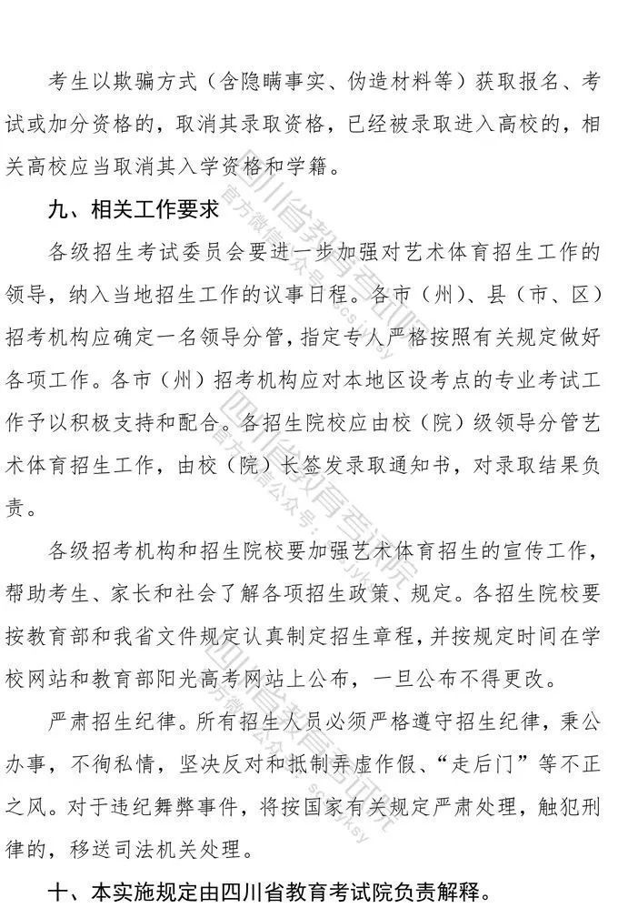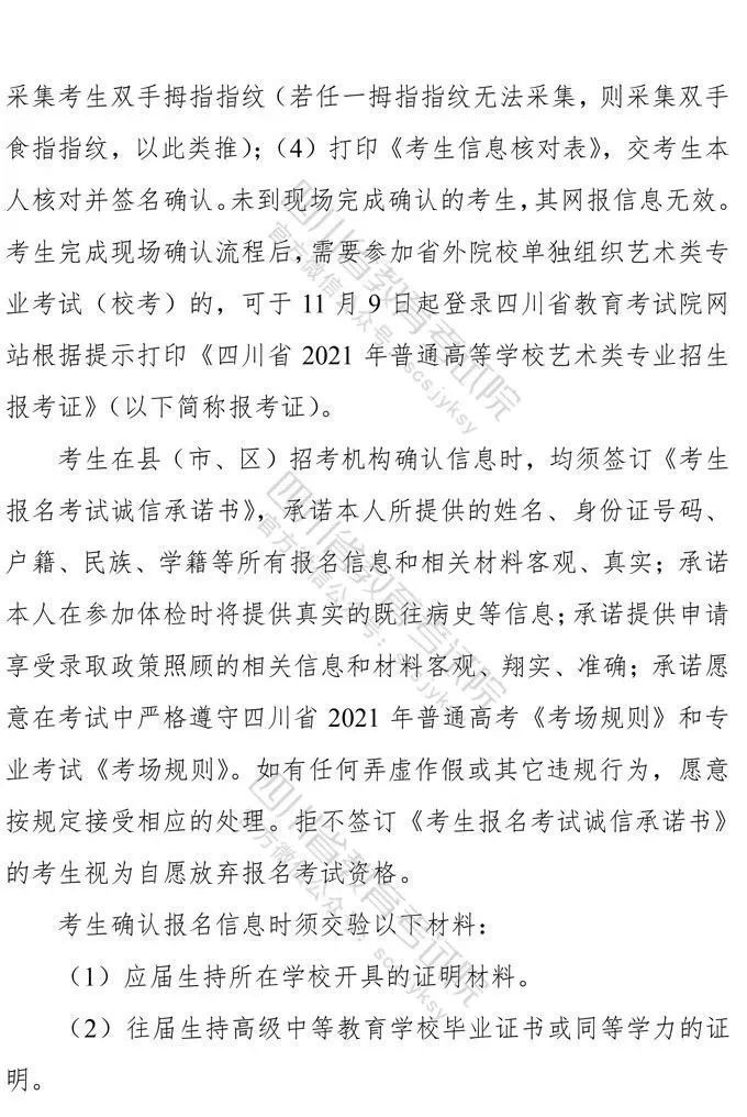 10月9日,记者从省教育考试院获悉,《四川省高等教育招生考试委员会关于印发<四川省2021年普通高等学校艺术体育类专业招生工作实施规定>的通知》已下发,《通知》对我省2021年普通高校艺术体育类各专业招生工作进行了统一安排部署,10月10日9:00至16日17:00为文化考试网上报名时间,各类专业统考网上报名、缴费时间为:11月1日9:00至4日17:00。