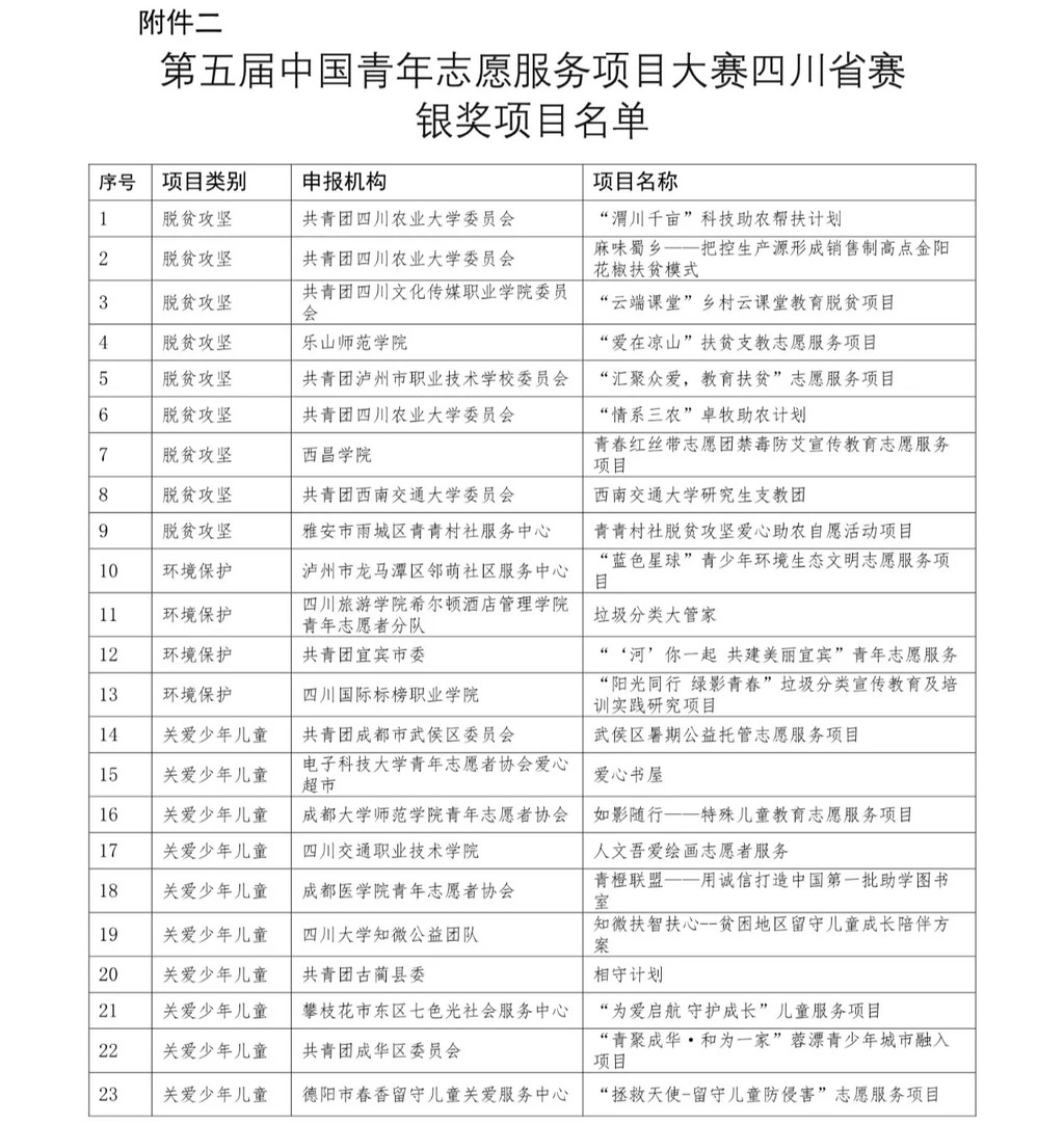 10月9日,记者从共青团四川省委获悉,第五届中国青年志愿服务项目大赛四川省赛金、银奖项目公示结束,获奖名单正式出炉。其中,四川日报社“川观新闻爱心专车”战疫志愿服务项目荣获四川省赛金奖,将作为四川省优秀项目参加全国赛,冲击全国青年志愿服务项目大赛奖项。