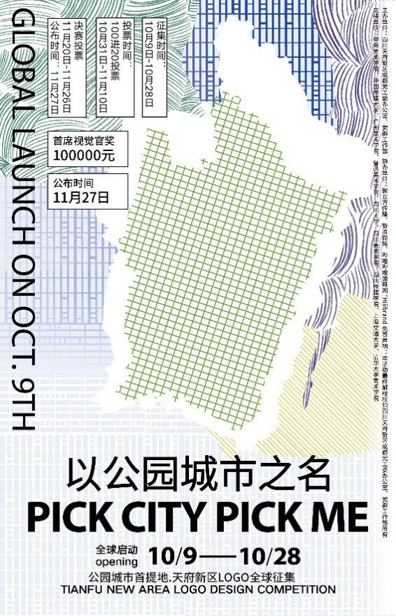 记者获悉, 本次“公园城市首提地·天府新区LOGO全球征集大赛”由四川天府新区成都党工委管委会主办,中央美术学院、中国传媒大学、广州美术学院、鲁迅美术学院、四川大学、四川美术学院、四川传媒学院、上海交通大学、清华大学美术学院等单位支持。大赛征集时间为10月9日-10月28日,通过投票和决赛角逐,将于11月27日公布最终获奖名单。