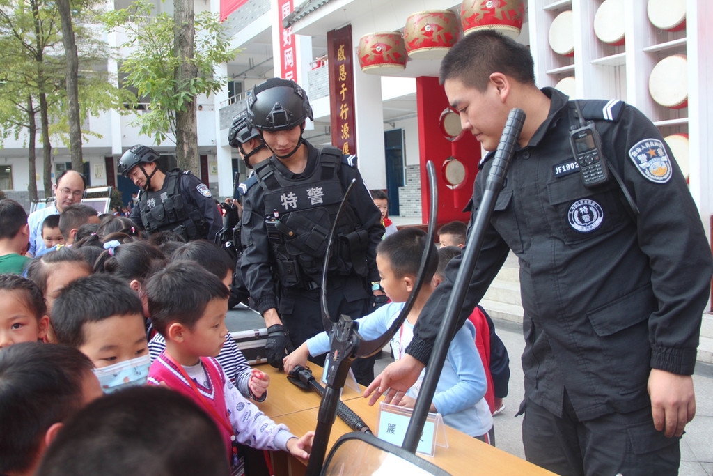 此次演练模拟场景设定在接警后,巡警大队快反小组快速响应,携带武器警械赶赴现场处置。经警告无效后,民警果断使用盾棍组合技战术将“歹徒”制服。演练结束后,巡警大队民警向师生们展示了常用的警用武器警械装备,红光派出所民警对整个演练过程进行解析,对全区中小学分管安全的相关负责人及安保人员开展了处置突发事件培训。现场,民警还采取PPT演示和现场问答相结合的形式,讲解校园安全防范知识。