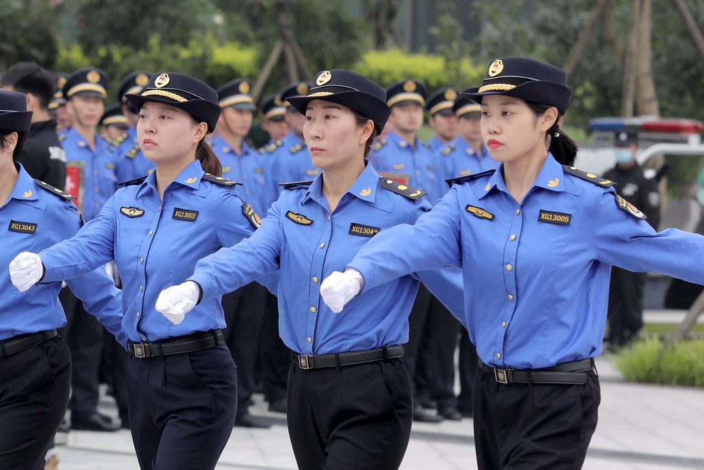 据悉,成都武侯区综合行政执法局积极开展为期3年的“城管执法队伍规范化建设”专项行动,对全区执法队伍进行规范训练。在现场,来自武侯区综合行政执法局的7支队伍,以整齐的步伐,响亮的口号,依次按照稍息与立正、停止间转法、跨立与立正、敬礼与礼毕、齐步走等军事动作进行队列会操演练,展示了执法人员的良好精神风貌,450余名队员进行了现场观摩。