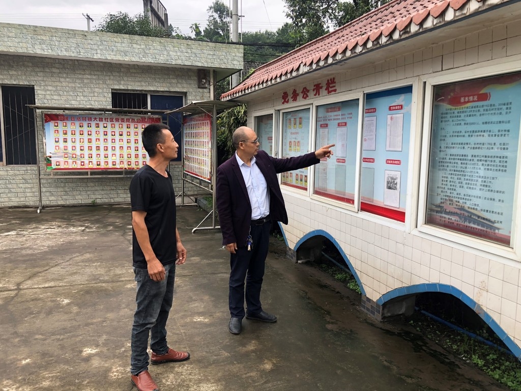 夹江县马村镇大路社区纪委书记周兴旺检查居务公开公示情况(右)