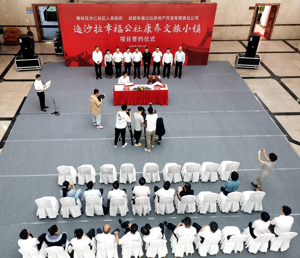 10月12日,迤沙拉幸福公社康养文旅小镇项目签约仪式在攀枝花会展中心举行,项目将由仁和区与成都幸福公社房地产开发公司携手打造,双方将建设田园式康养、文创旅游一体的幸福小镇。