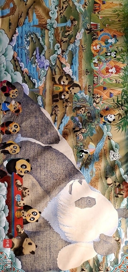 大熊猫呆萌的造型格外引人注目,被誉为“天之骄子,国之瑰宝”的大熊猫,在国人心目中是“勇敢、正直、和平、忠厚”的象征,是和平的使者,友好的化身。阿坝州文化馆(州美术馆、州非遗中心)副馆长、大熊猫百图唐卡长卷主创人易生告诉记者,“希望大家能通过视觉来深入地来了解熊猫,关爱熊猫,让世界走向和平,给世界带来和平。”